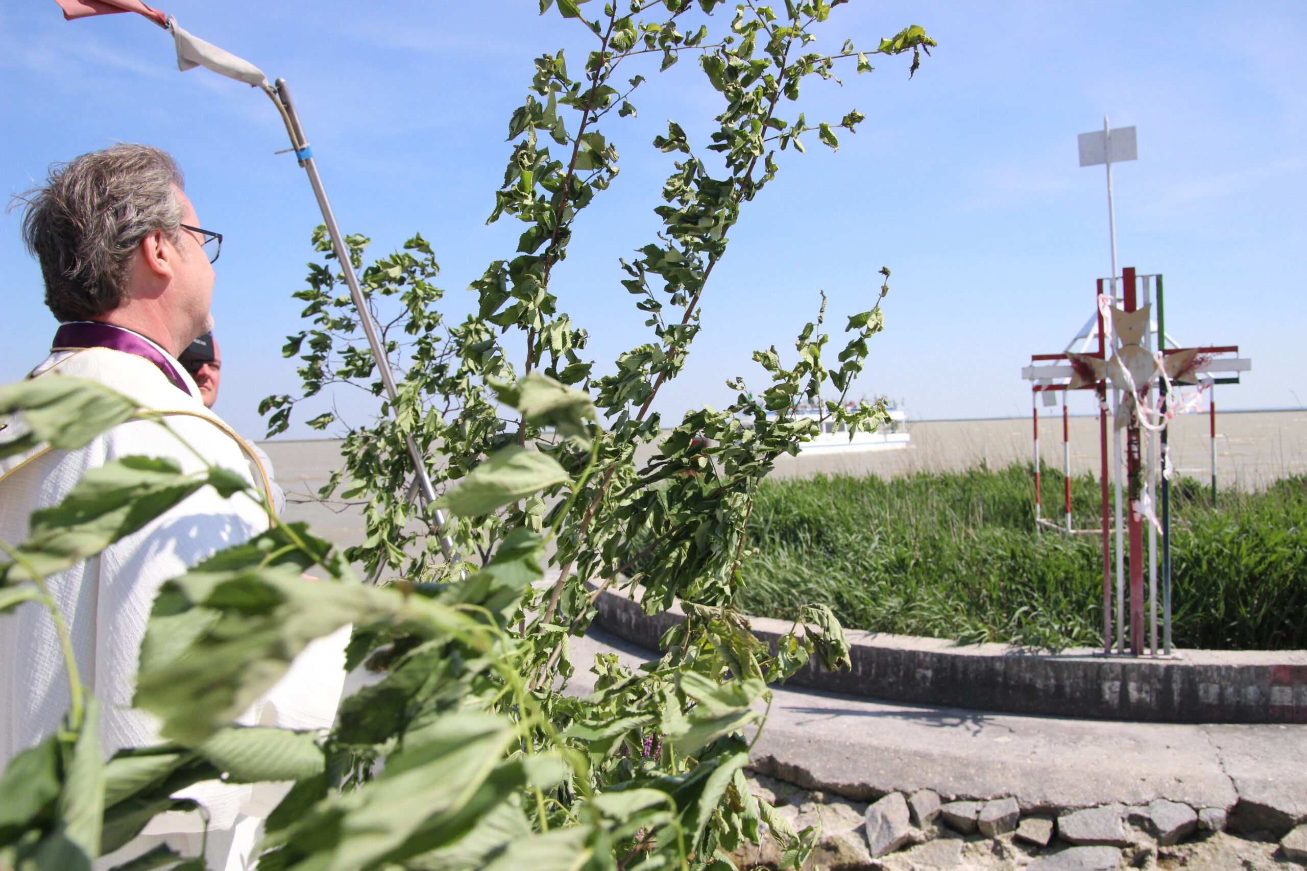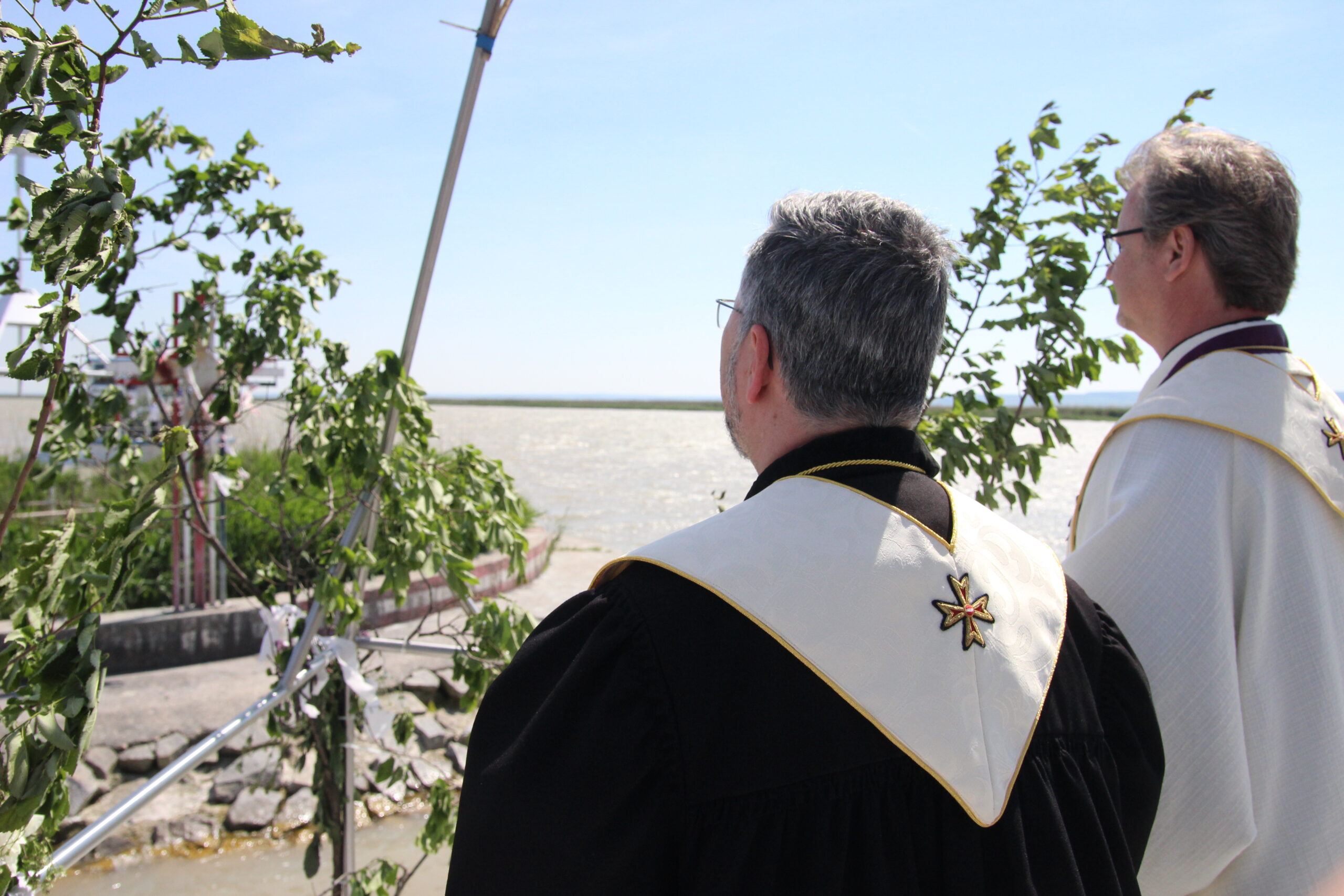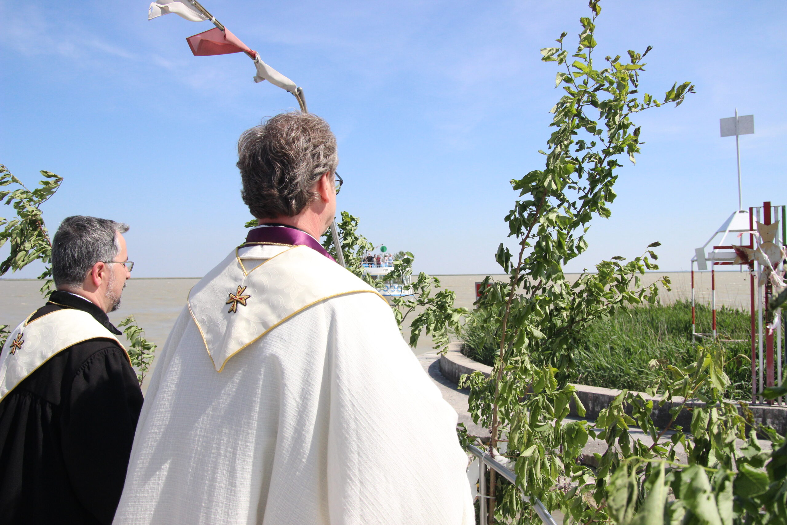 A ceremónia szentmisével folyatódott a tavon, amelyet Gabnai Sándor Evangélikus lelkész, és Dr. Richard Geier urak celebráltak magyarul és németül, az ünnepség levezetését Veres János borlovag végezte, aki köszöntötte a részvevőket, meghívottakat és a Lovagrend jelen levő tagjait. A megnyitó beszédében kiemelte a jelentőségét annak, hogy most még inkább nagy szerepe van a Fertő-menti embereknek az összefogására nemzetiségi és vallási hovatartozás nélkül. A Liturgia és megemlékezés szavai közben a zenekarok különböző zenékkel tették meghittebbé a rendezvényt. Ragyogó napsütésben,csodálatos volt a rendezvény, mindenki jól érezte magát és még soha nem volt ennyi résztvevője a rendezvénynek.