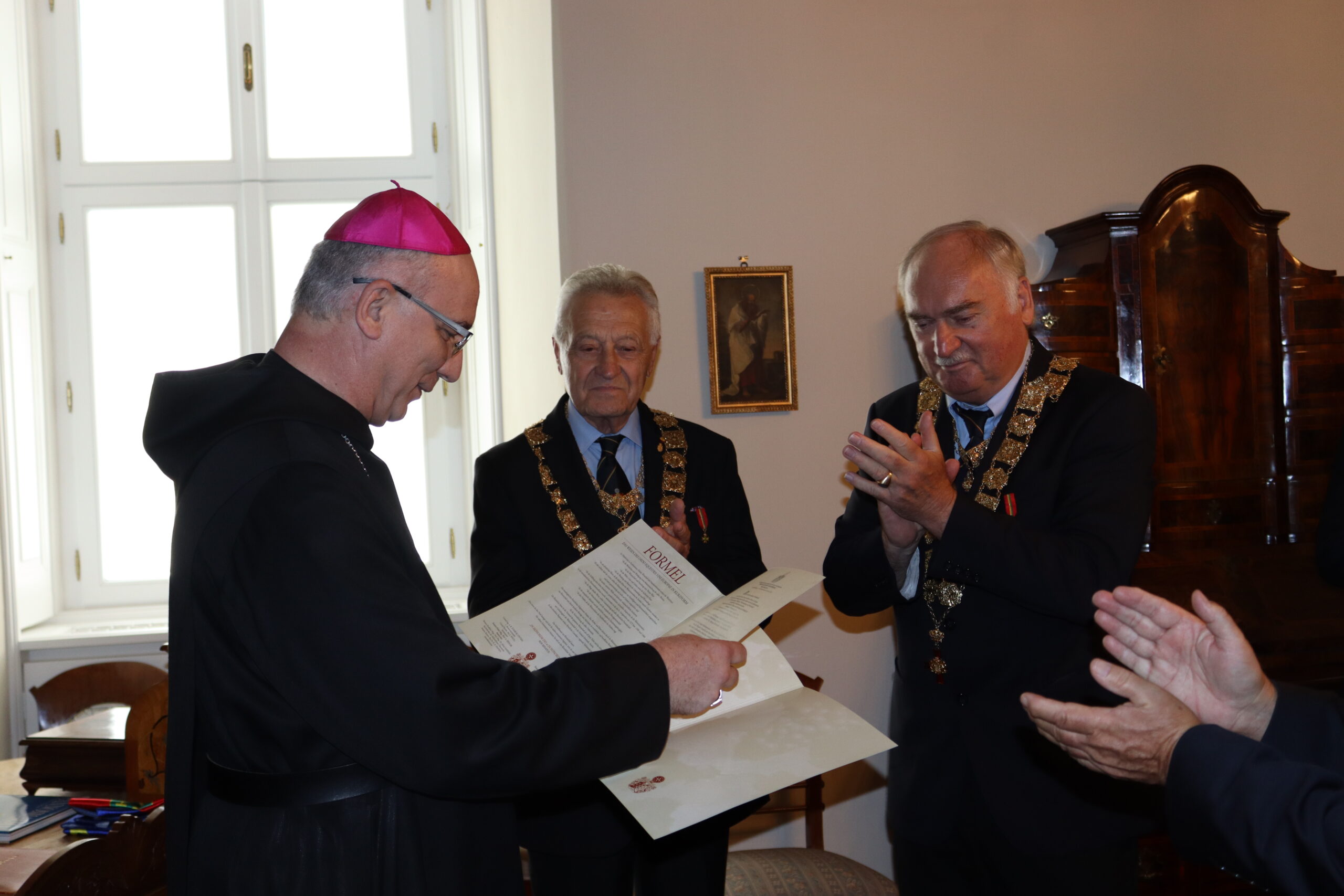 Az Európai Borlovagrend eisenstadt-i Szenátusának négy vezető képviselője és a Hungária konzulátus nyolc lovagrendi tagja – dr. Dejcsics Konrád kulturális igazgató jelenlétében -, július 4-én koszorút, majd emléktáblát helyezett el a Főapátság altemplomában, dr. Habsburg Ottó szívurnájánál.